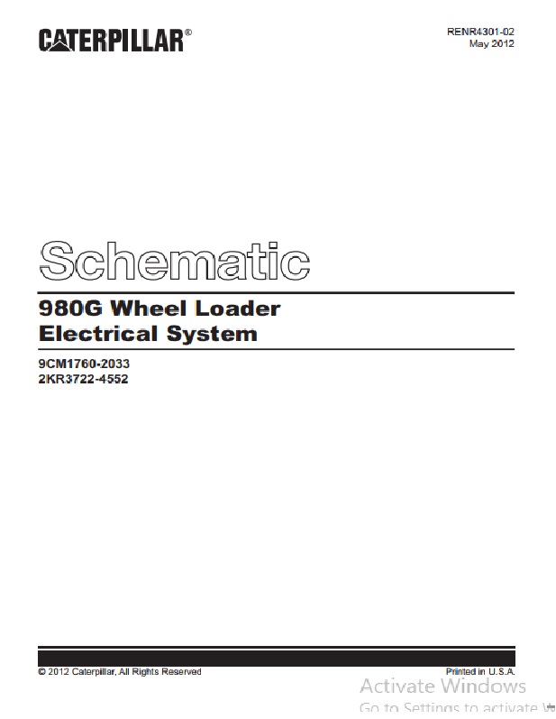 Caterpillar 980G Wheel Loader Electrical System Schematic RENR4301-02