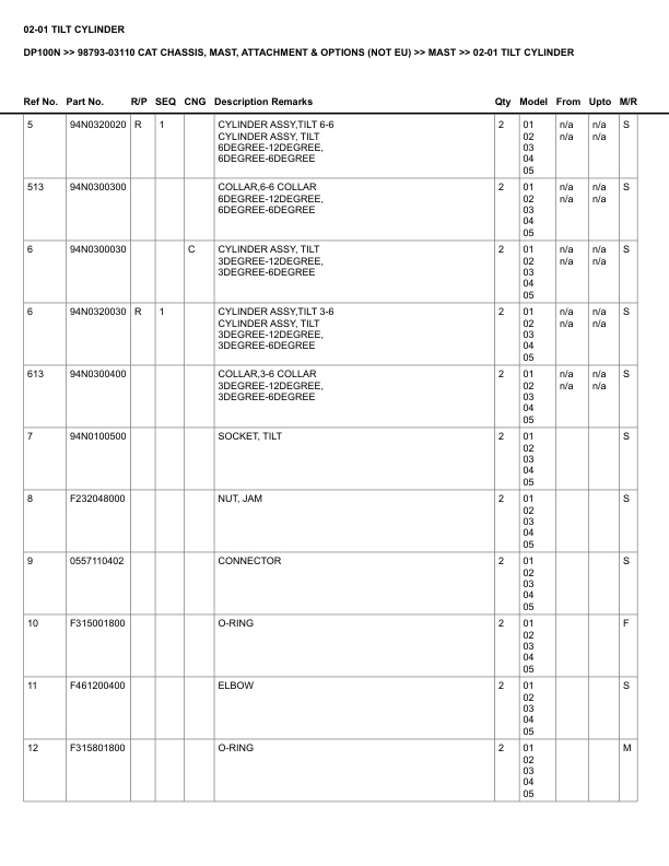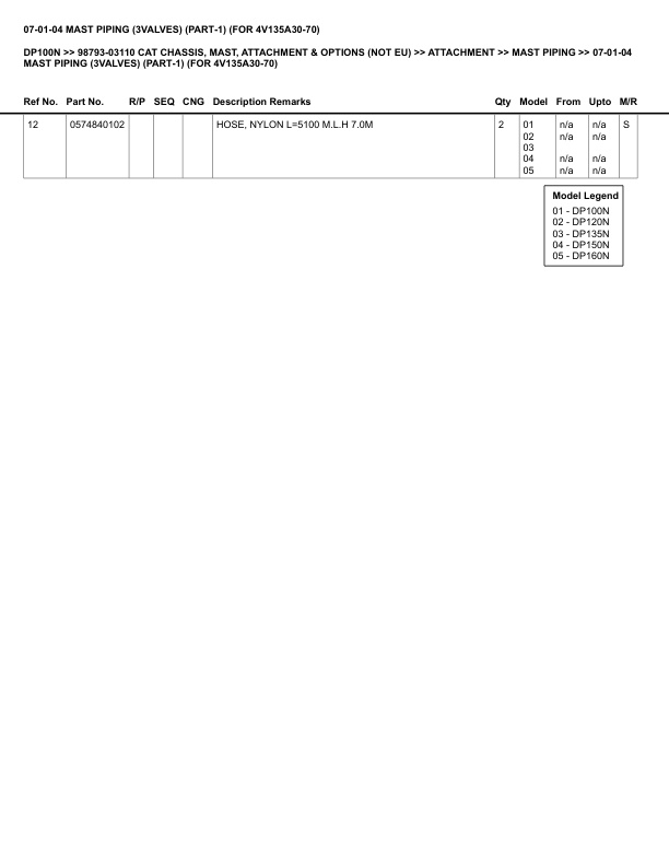 Caterpillar DP100N Parts Manual 98793-03110