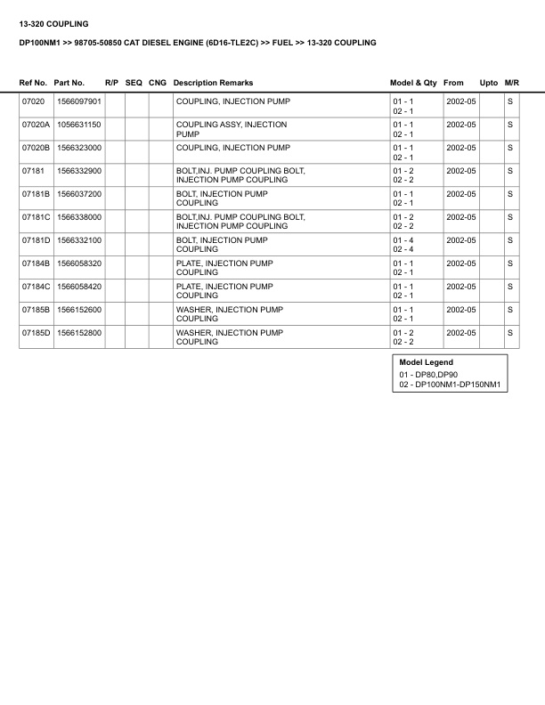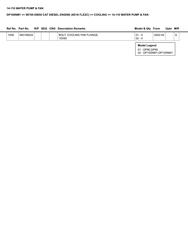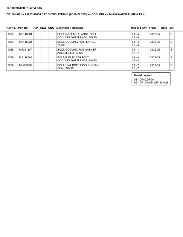 Caterpillar DP100NM1 Parts Manual 98705-50850