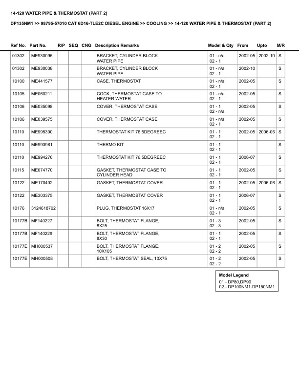 Caterpillar DP135NM1 Parts Manual 98795-57010