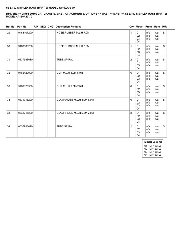 Caterpillar DP135NZ Parts Manual 98793-00100