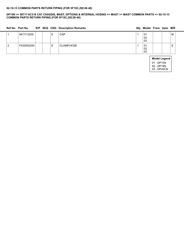 Caterpillar DP15N Parts Manual 98717-0C310