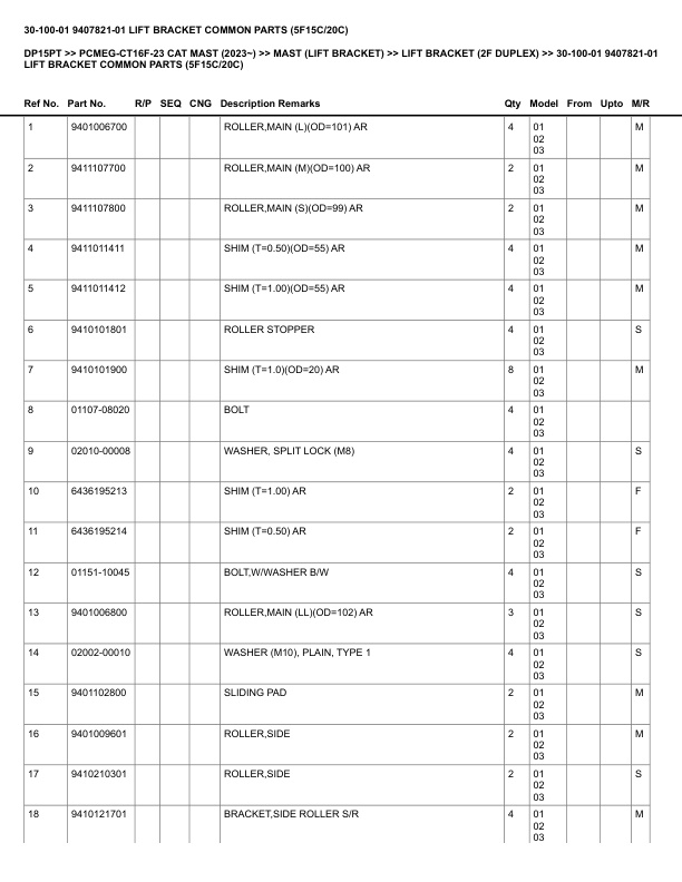- 102. _30-100-01 9407221-01 LIFT BRACKET COMMON PARTS (5M15D_20D) Spare Parts Catalog.pdf