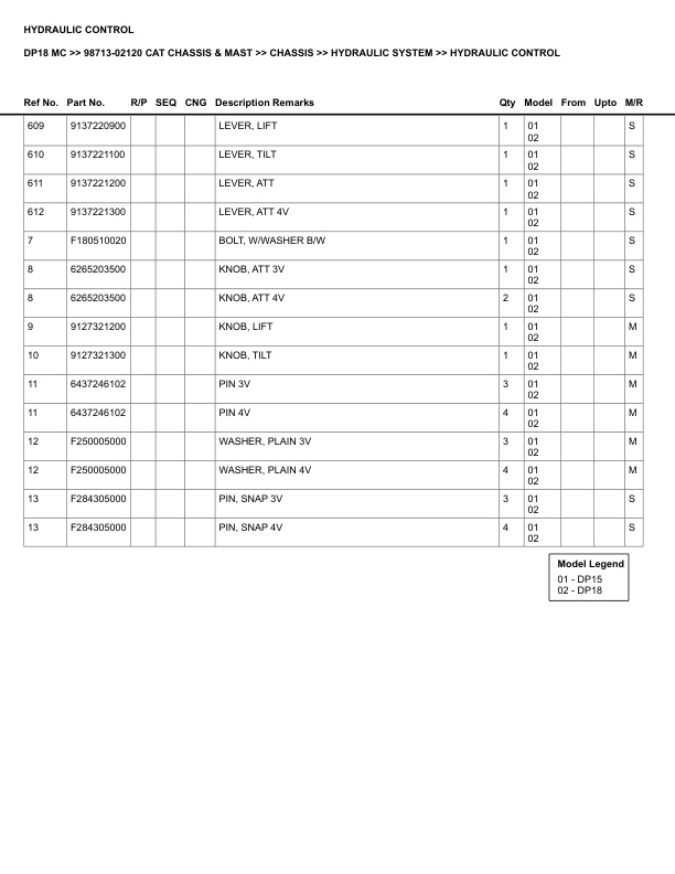 Caterpillar DP18 MC Parts Manual 98713-02120