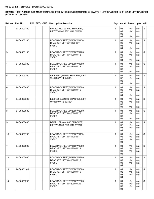 - 1. _01-01-01 LIFT BRACKET COMMON PARTS (FOR 5V15D, 5V20D) Spare Parts Catalog.pdf