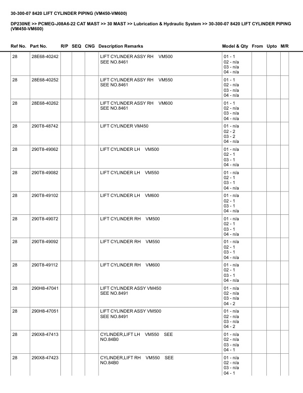 - 10. _30-300-07 8420 LIFT CYLINDER PIPING (VM450-VM600) Spare Parts Catalog.pdf