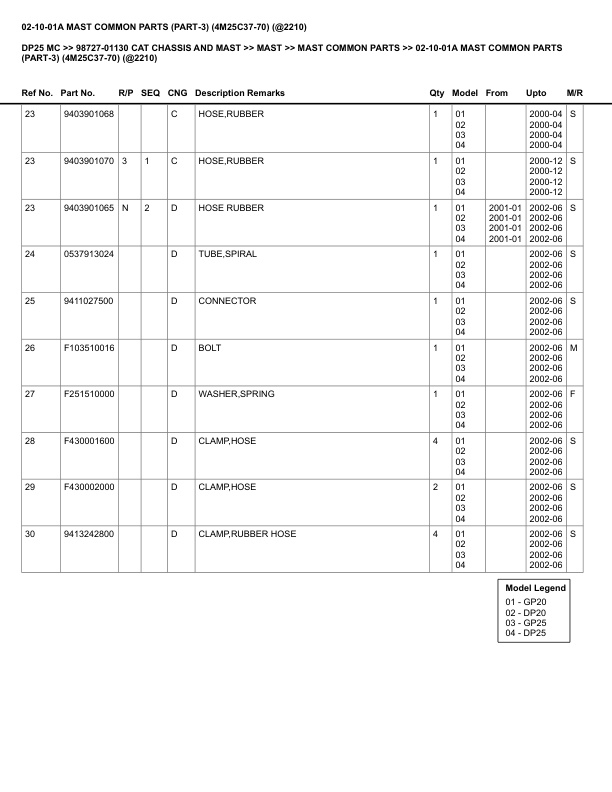 Caterpillar DP25 MC Parts Manual 98727-01130