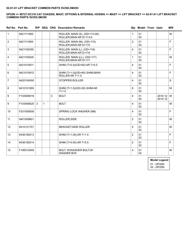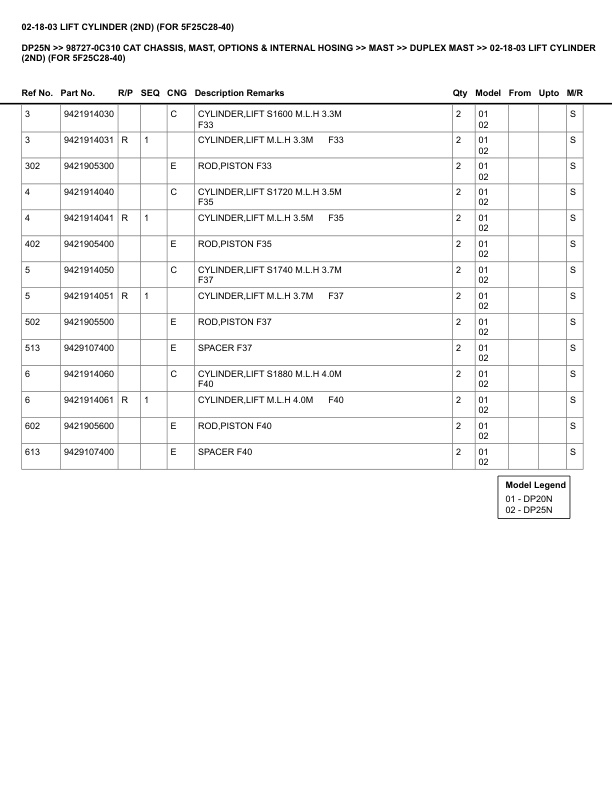 Caterpillar DP25N Parts Manual 98727-0C310