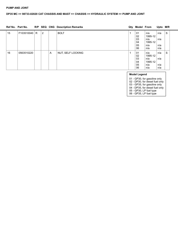 Caterpillar DP35 MC Parts Manual 98733-02020