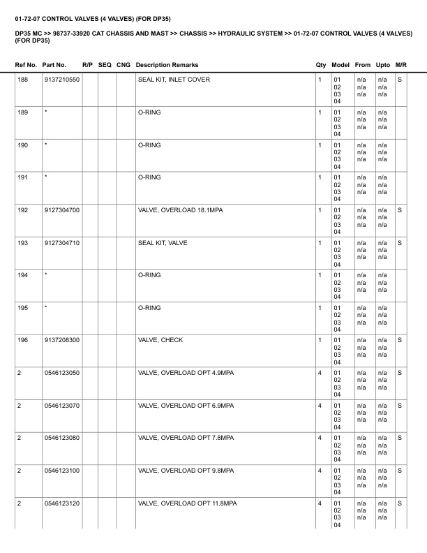 Caterpillar DP35 MC Parts Manual 98737-33920