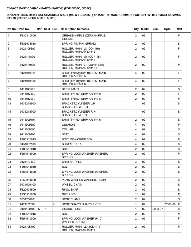 - 94. _02-10-07 MAST COMMON PARTS (PART-1) (FOR 5F30C, 5F35C) Spare Parts Catalog.pdf