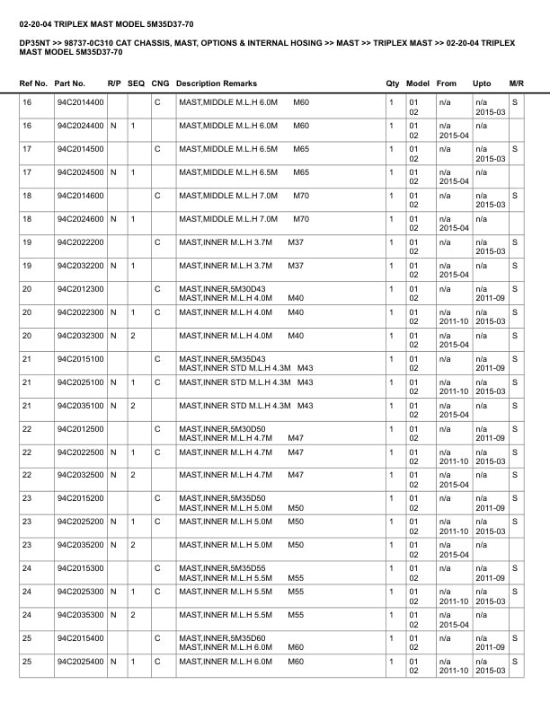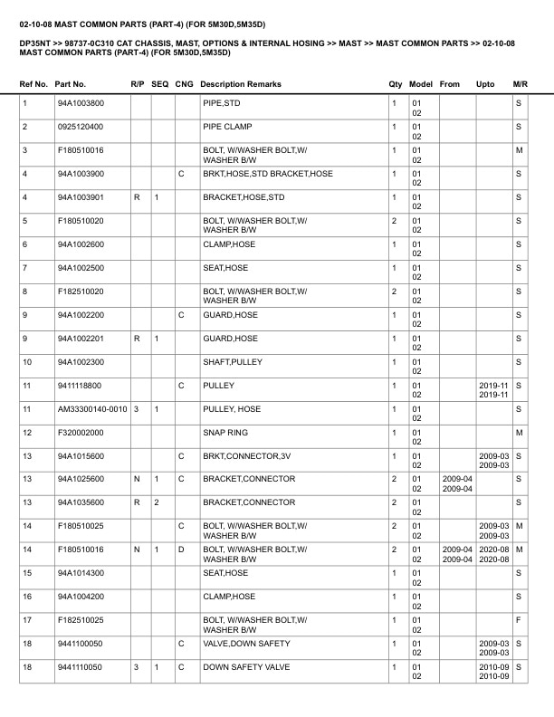 - Information: CAT CHASSIS, MAST, OPTIONS – INTERNAL HOSING