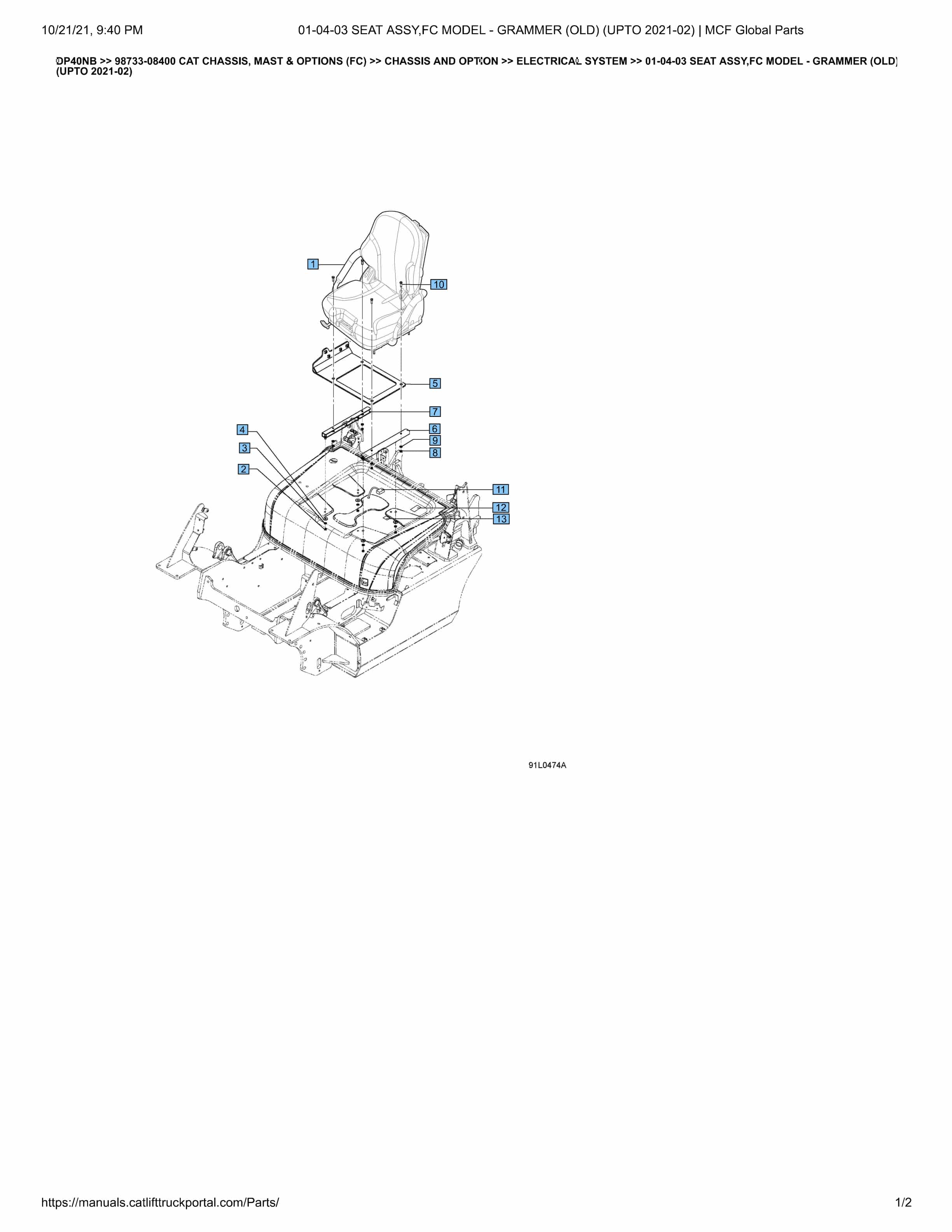 - DP40NB 01-04-03 Seat Assy, Fc Model – Grammer (Old)