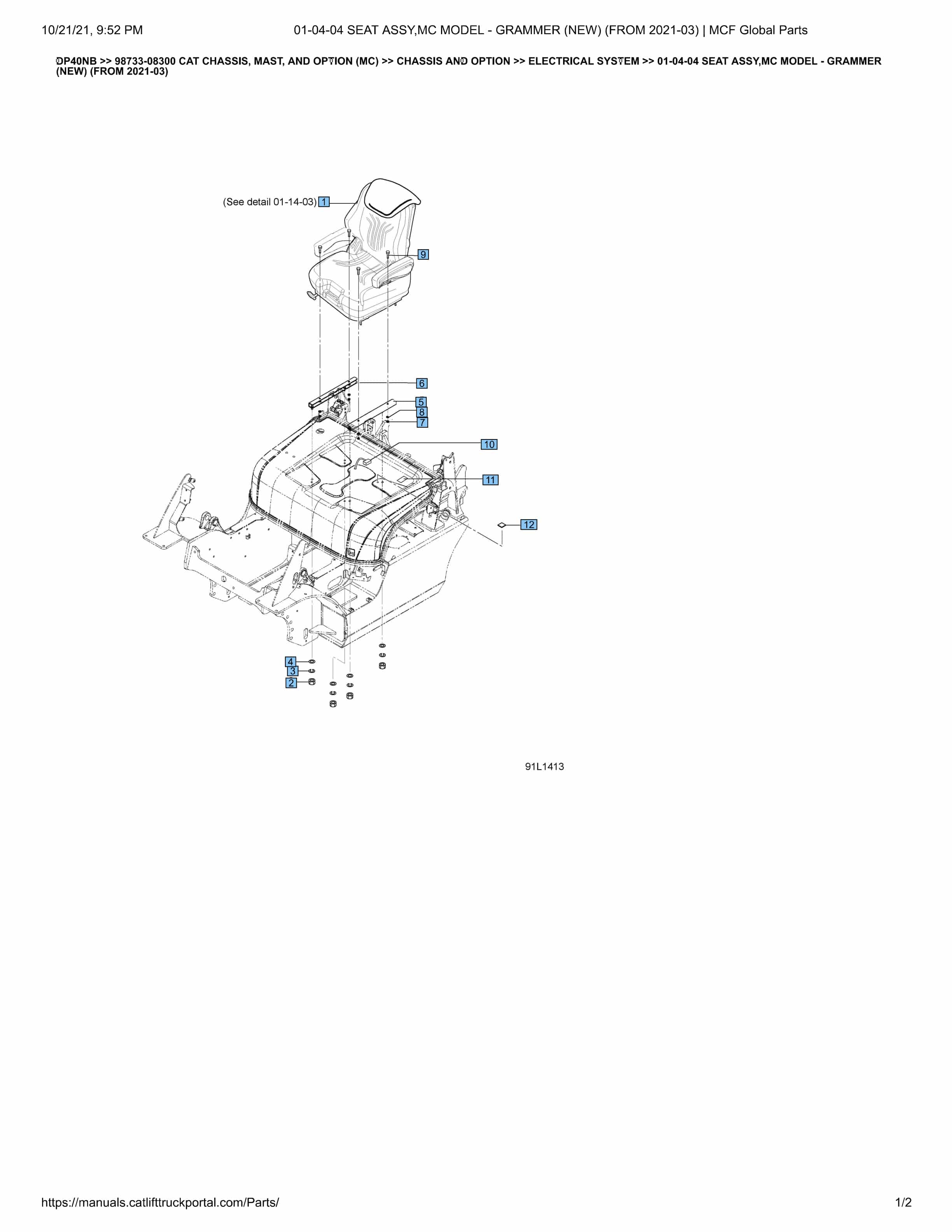 • Caterpillar DP40NB 01-04-03 Seat Assy, Fc Model - Grammer (Old) Electrical System 98733-08400 Caterpillar DP40NB 01-04-03 Seat Assy, Fc Model - Grammer (Old) Electrical System 98733-08400 $30.00