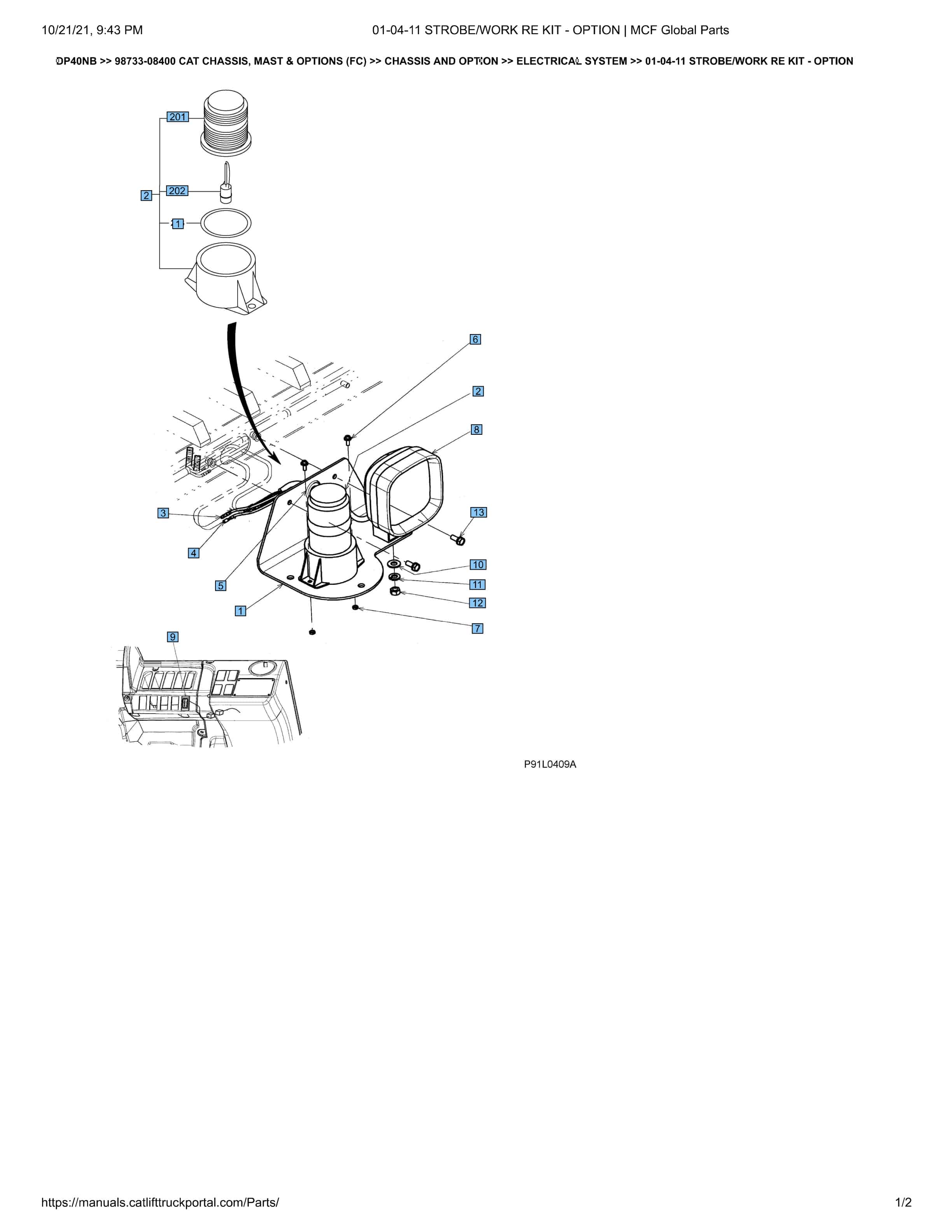 Caterpillar DP40NB 01-04-11 Strobe-Work Re Kit – Option Electrical System 98733-08400