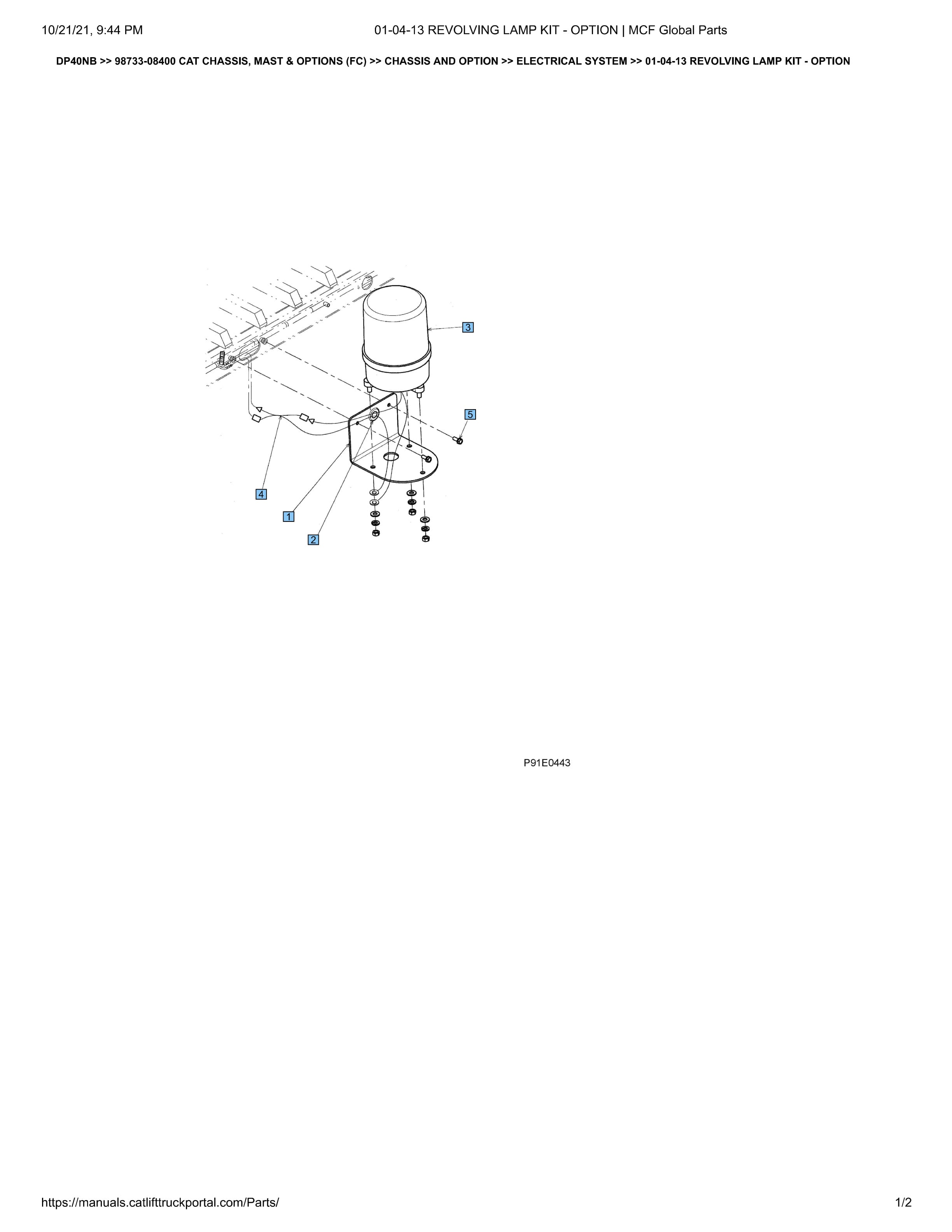 Caterpillar DP40NB 01-04-13 Revolving Lamp Kit – Option Electrical System 98733-08400