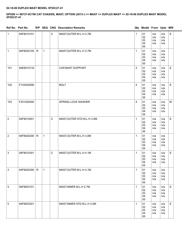 • Information: CAT CHASSIS, MAST, OPTION (2013-)