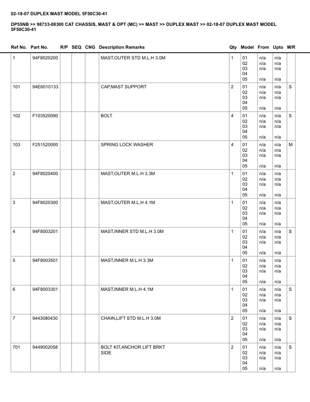 - Information: CAT CHASSIS, MAST – OPT (MC)