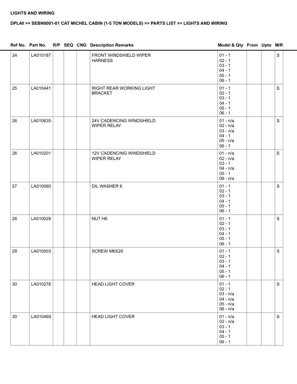 Caterpillar DPL40 Parts Manual SEBN0001-01