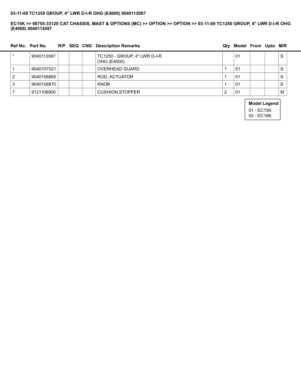 - Information: CAT CHASSIS, MAST – OPTIONS (MC)
