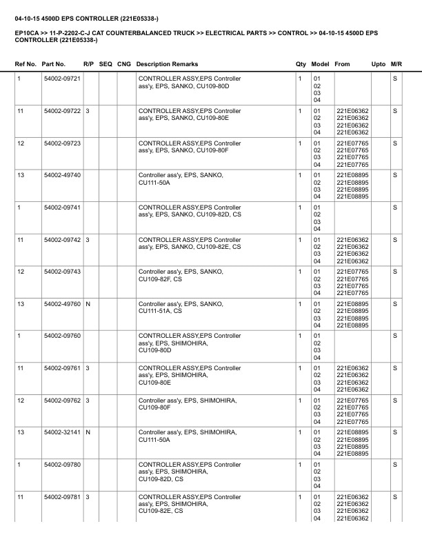 Caterpillar EP10CA Parts Manual PCUEM-J0CHG-190