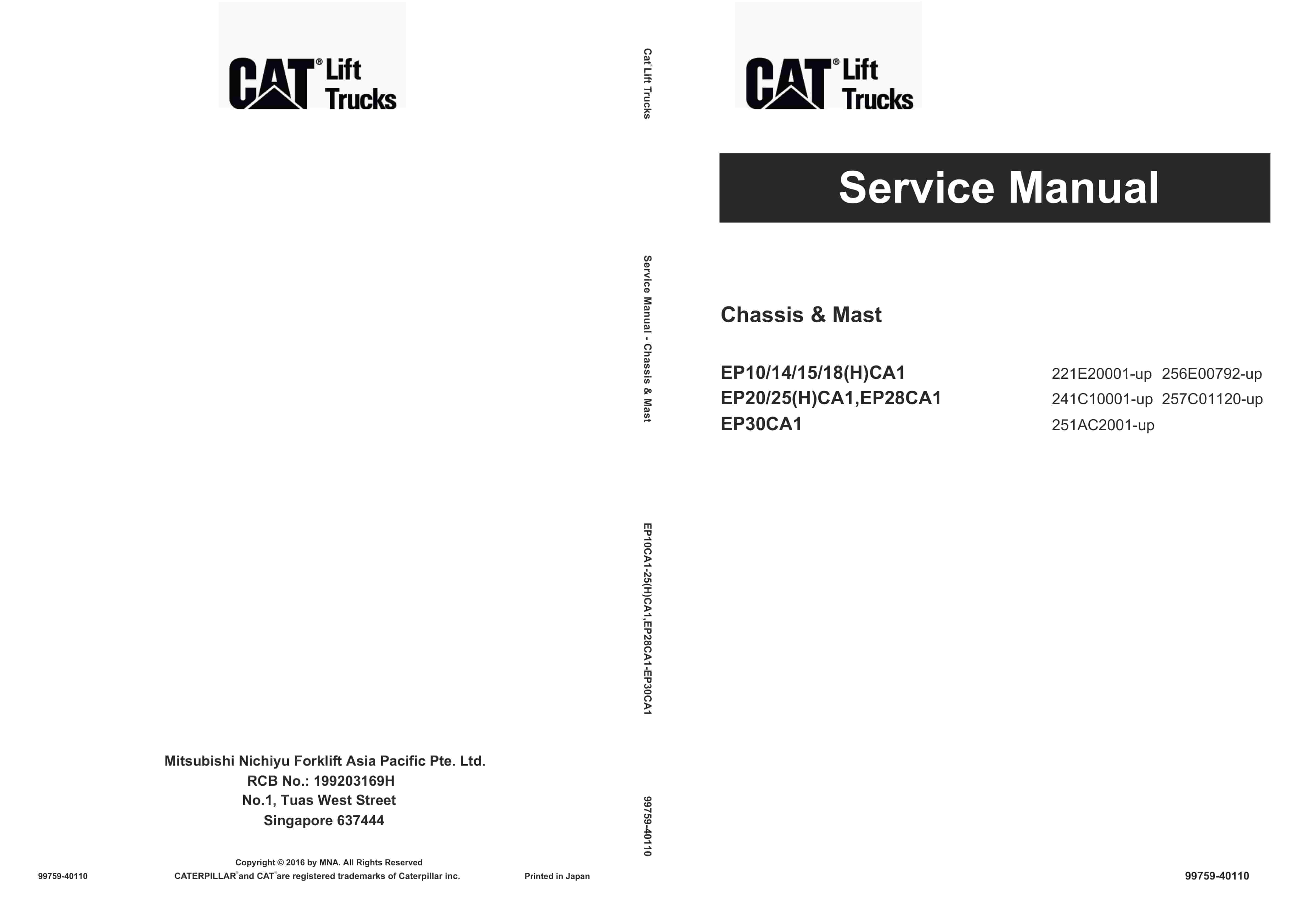 Caterpillar EP10CA1-25(H)CA1, EP28CA1-EP30CA1 Chassis and Mast Service Manual 99759-40110