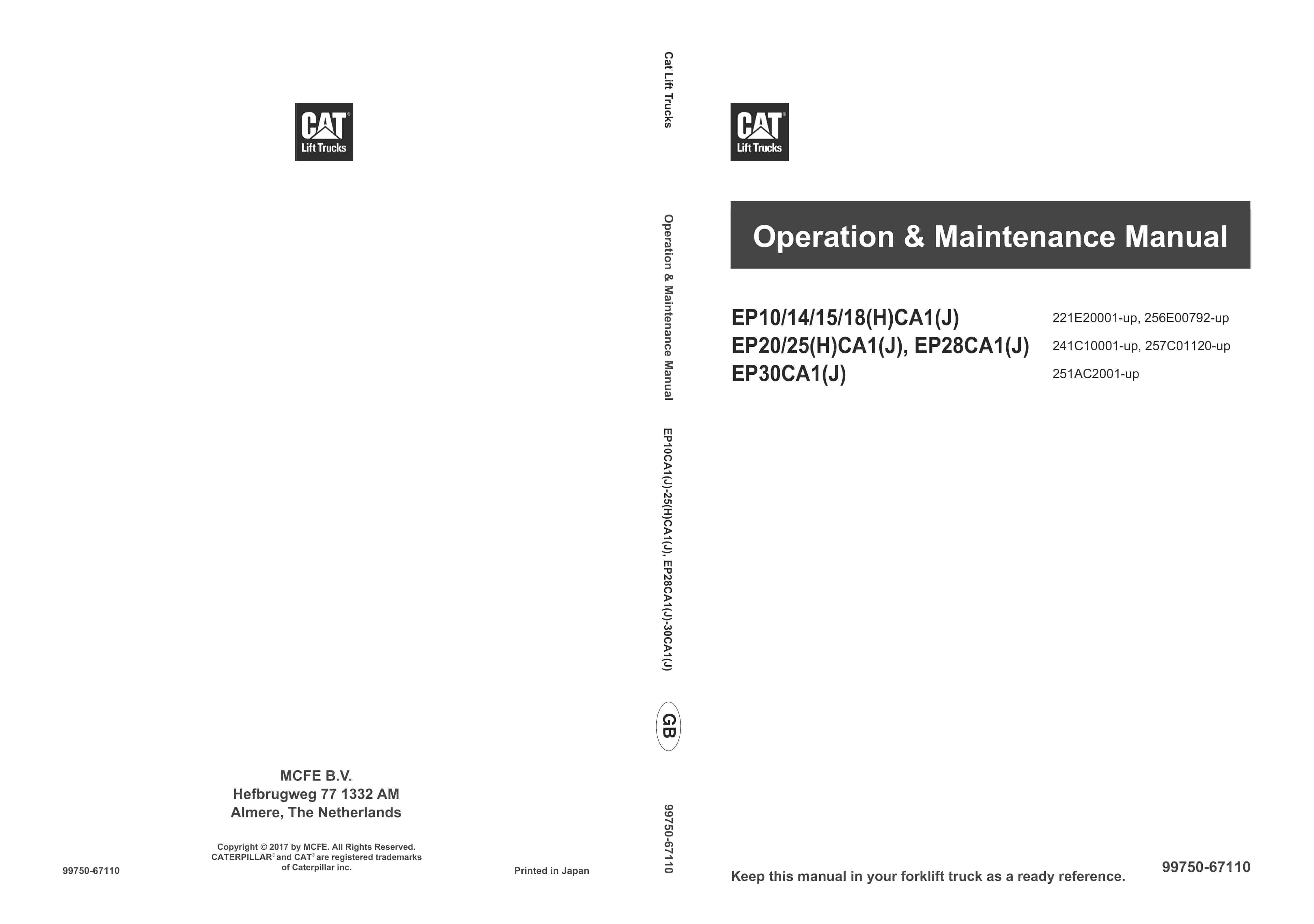 Caterpillar EP10CA1(J)-25(H)CA1(J), EP28CA1(J)-30CA1(J) Operation and Maintenance Manual 99750-67110