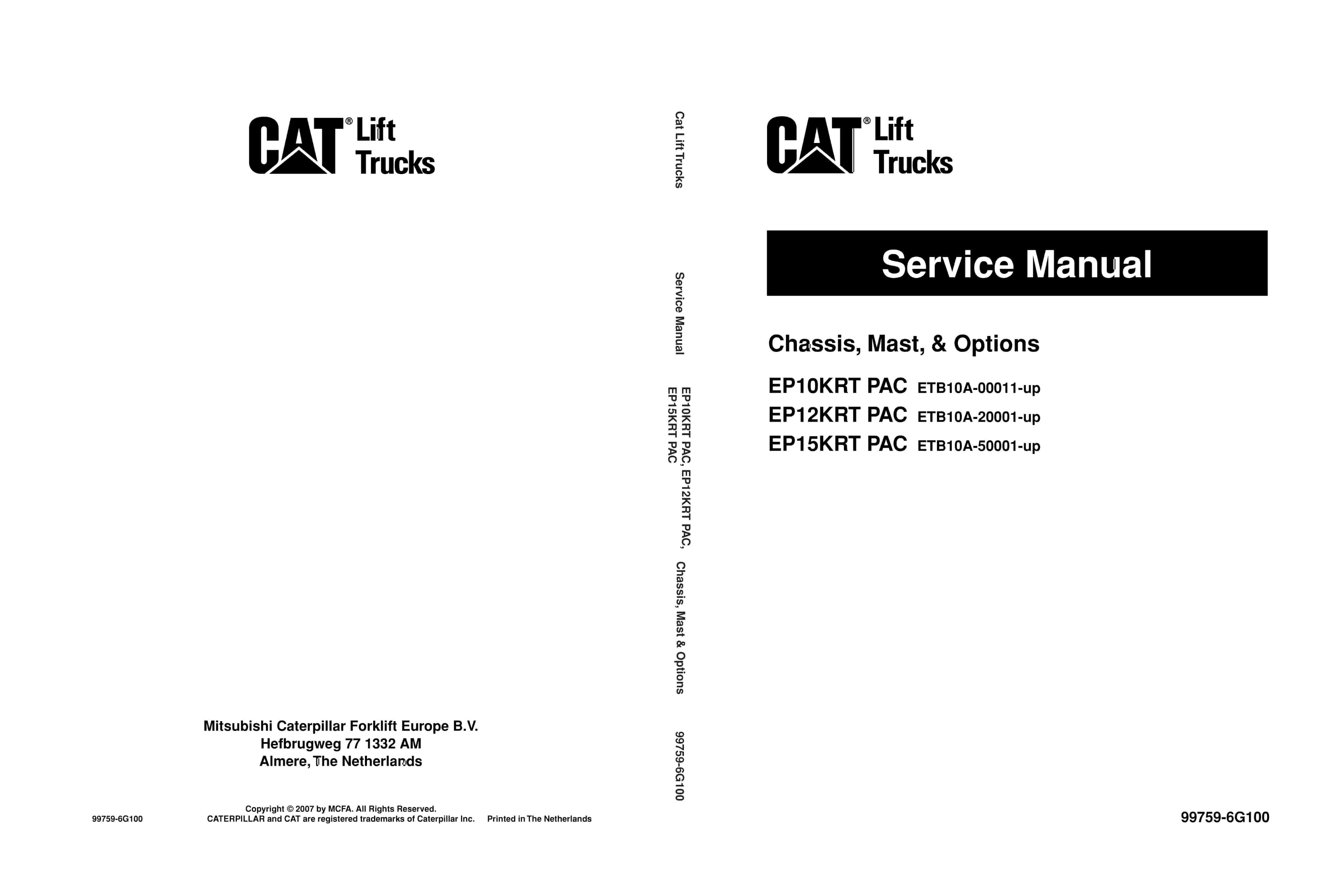 Caterpillar EP10KRT PAC to EP15KRT PAC Chassis, Mast and Options Service Manual 99759-6G100