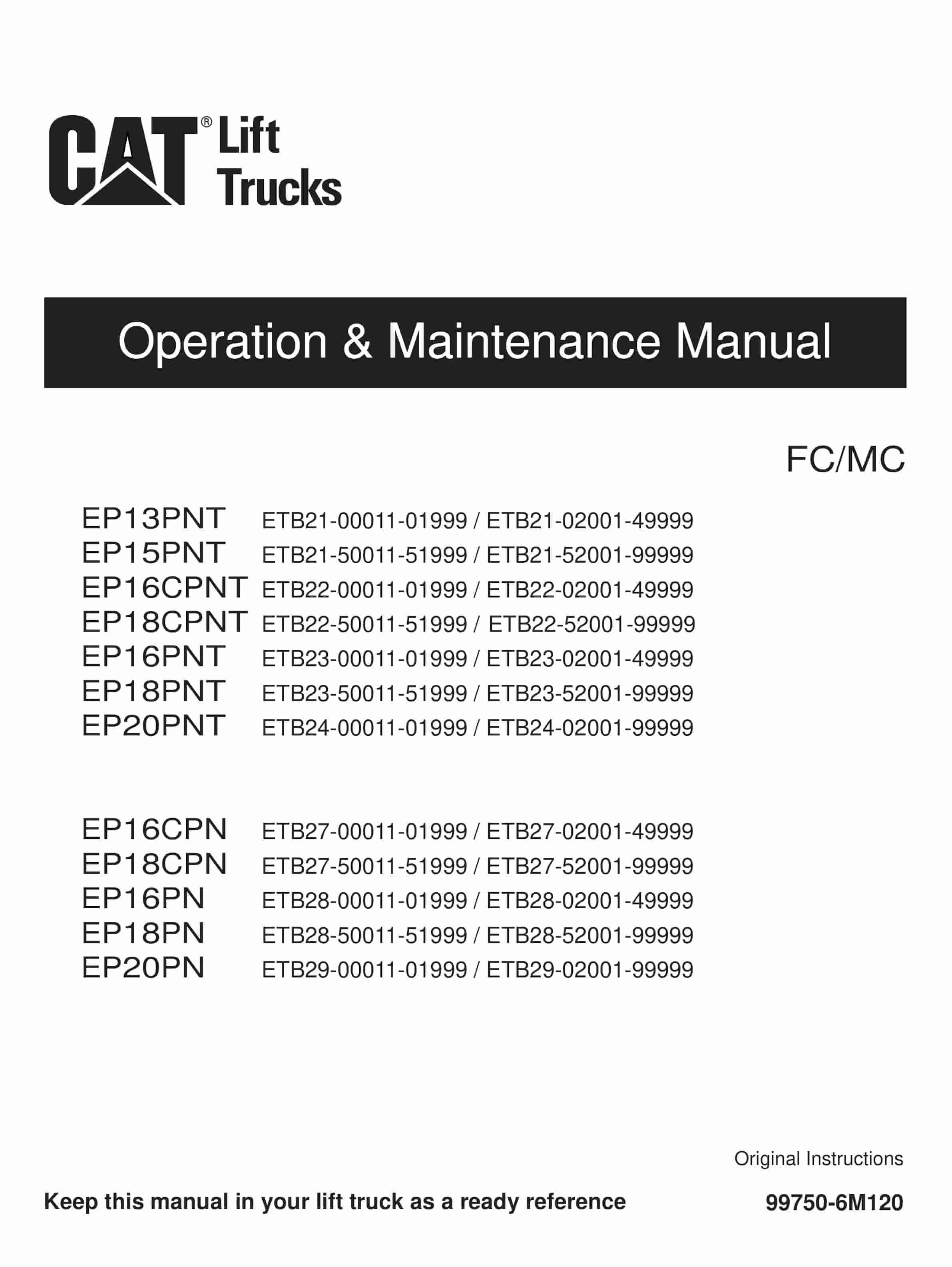 Caterpillar EP13PNT-20PNT, EP16CPN-20PN Operation and Maintenance Manual 99750-6M120