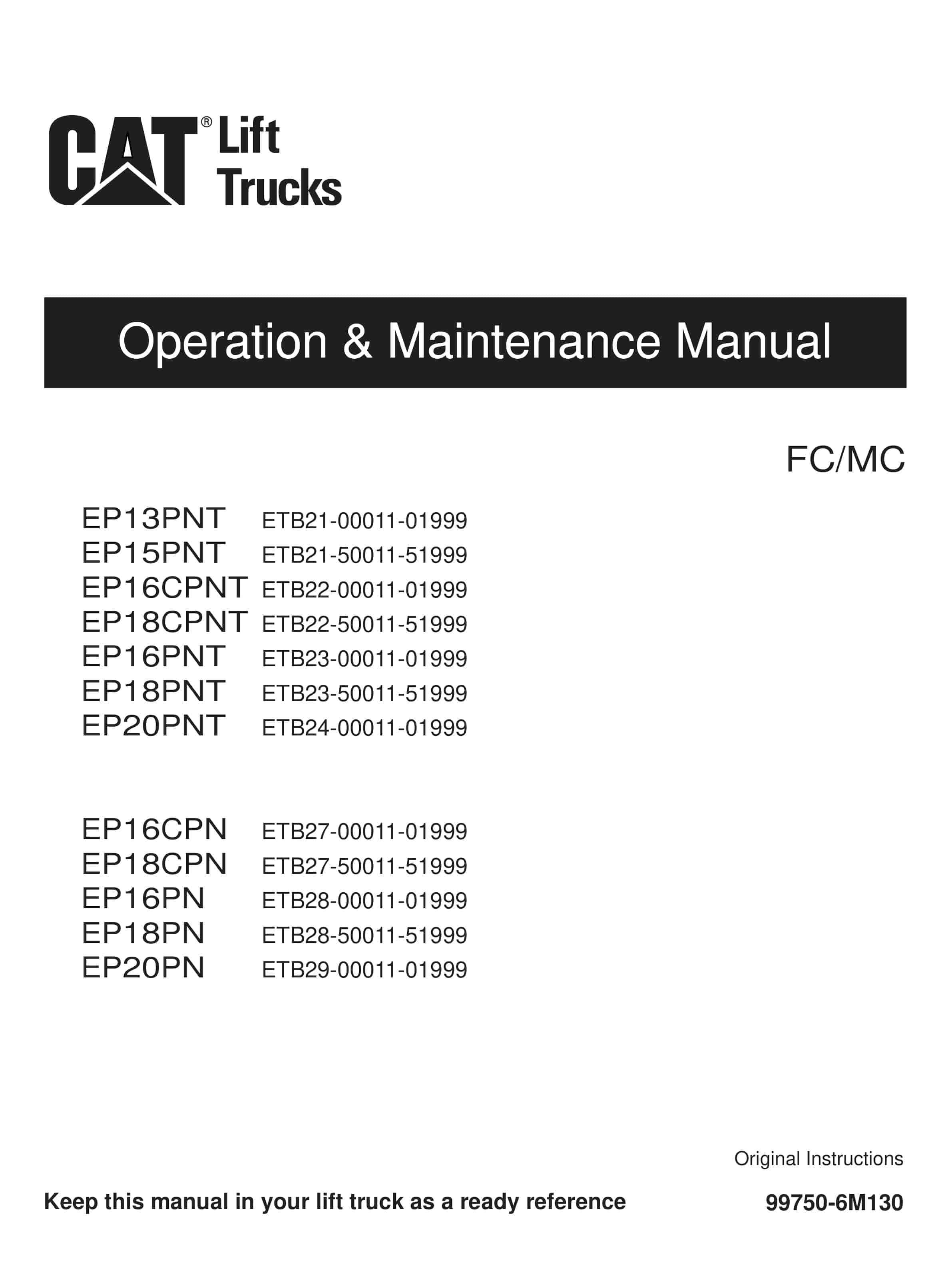 Caterpillar EP13PNT-20PNT, EP16CPN-20PN Operation and Maintenance Manual 99750-6M130
