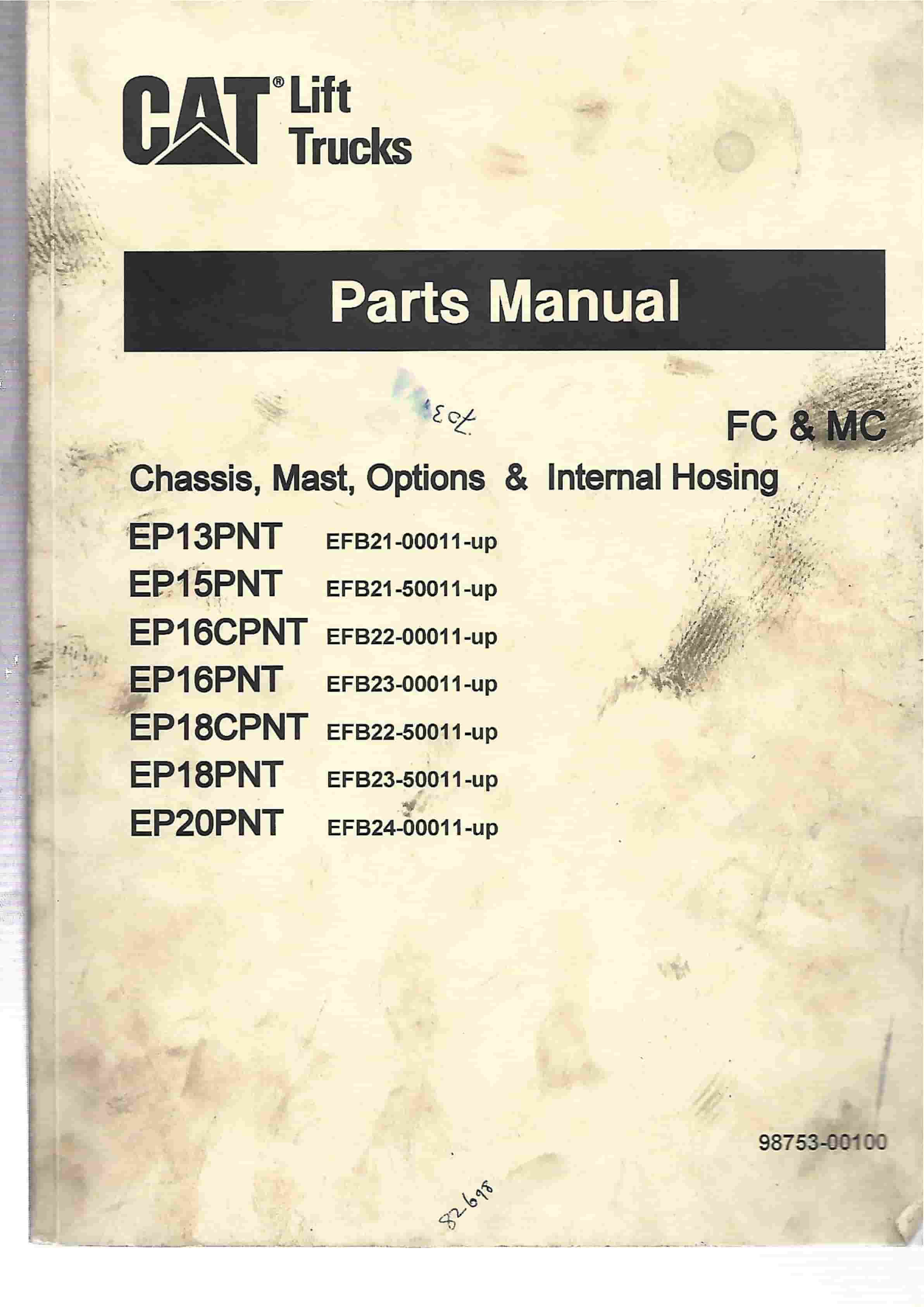 Caterpillar EP13PNT to EP20PNT Chassis, Mast, Options and Internal Hosing Parts Manual 98753-00100