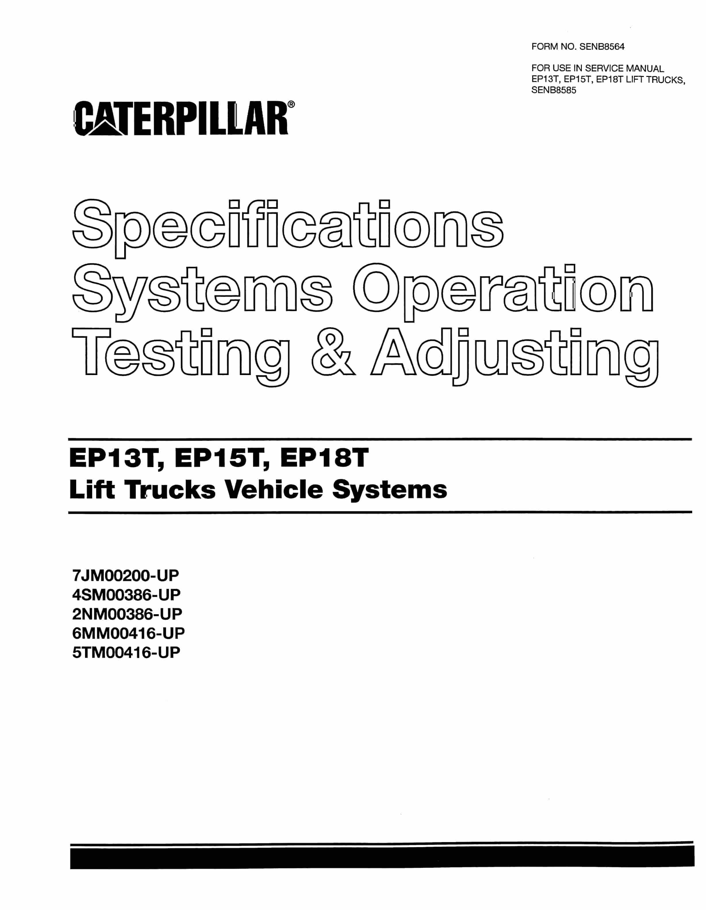 Caterpillar EP13T, EP15T, EP18T Lift Trucks Specifications Systems Operation Testing and Adjusting SENB8564