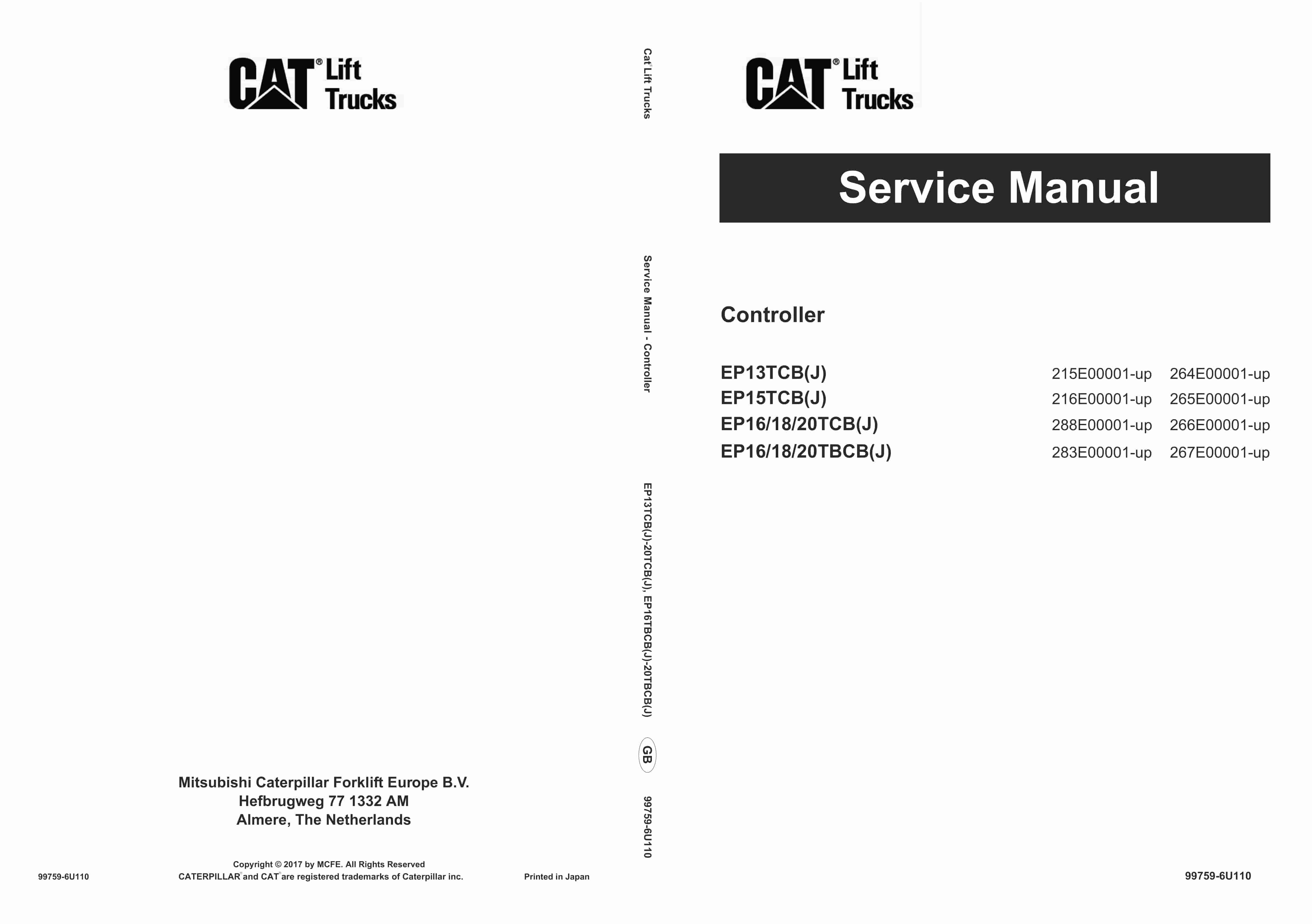 Caterpillar EP13TCB(J)-20TCB(J), EP16TBCB(J)-20TBCB(J) Controller Service Manual 99759-6U110