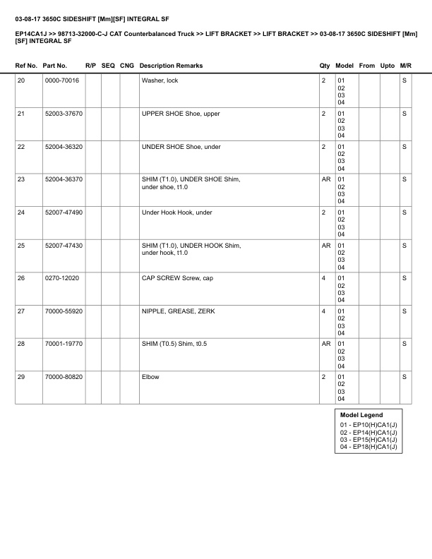 Caterpillar EP14CA1J Parts Manual 98713-32000-C-J