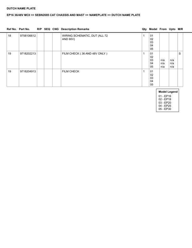 Caterpillar EP16 36 48V Parts Manual MCII SEBN2685