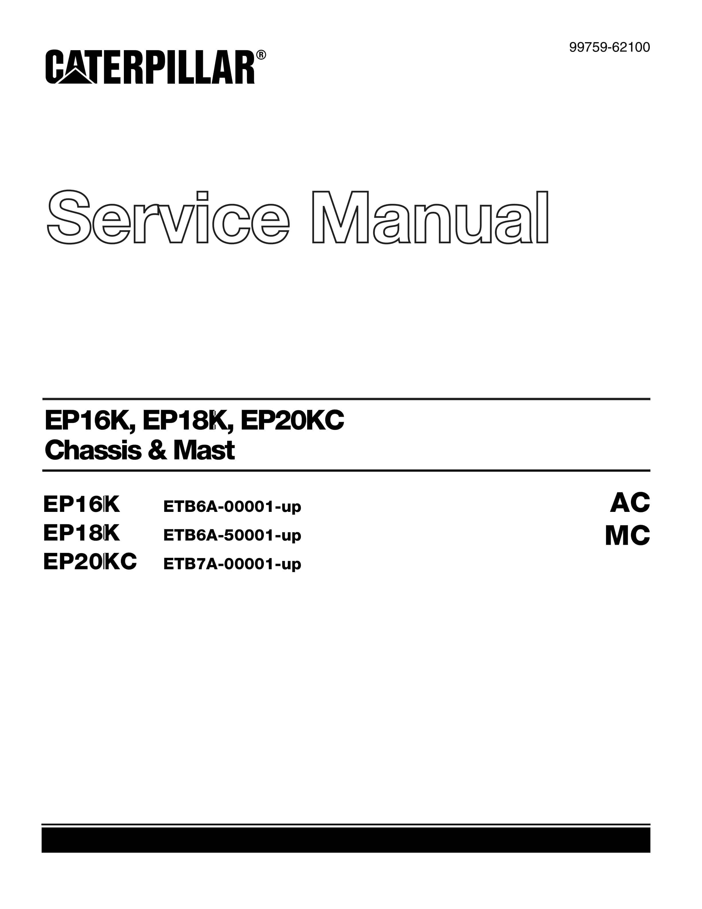 Caterpillar EP16K, EP18K, EP20KC Chassis and Mast Service Manual 99759-62100