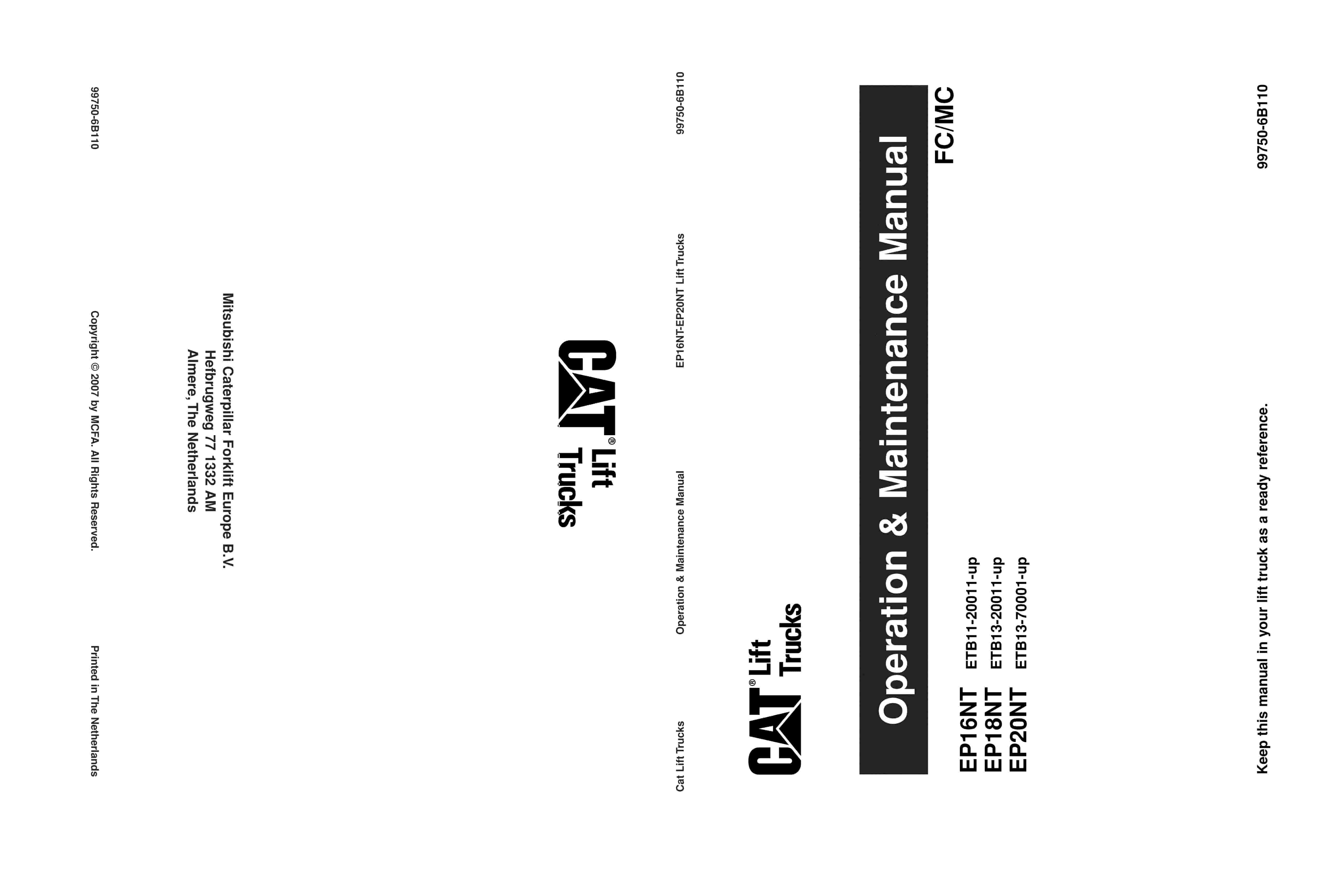 Caterpillar EP16NT, EP18NT, EP20NT Operation and Maintenance Manual 99750-6B110