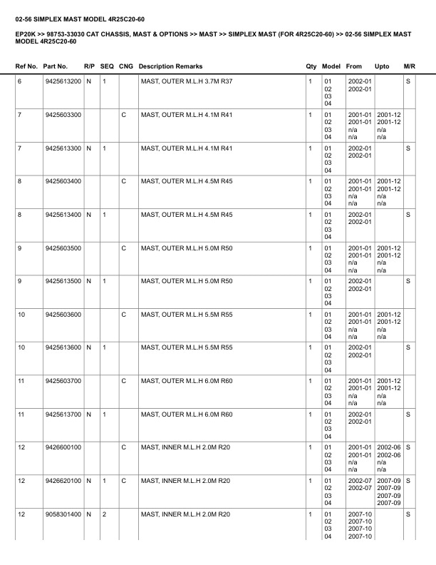 - Information: CAT CHASSIS, MAST – OPTIONS