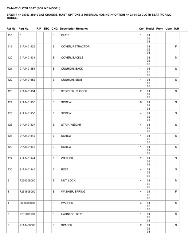 - 103. _03-14-01 CLOTH SEAT (FOR FC MODEL) Spare Parts Catalog.pdf