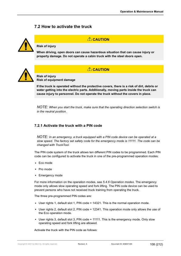 - 11.6.1. Return the truck to operation