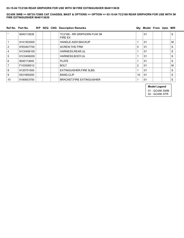 - 110. _03-15-04 TC2168 REAR GRIPHORN FOR USE WITH 5 FIRE EXTINGUISHER 9040113639 Spare Parts Catalog.pdf