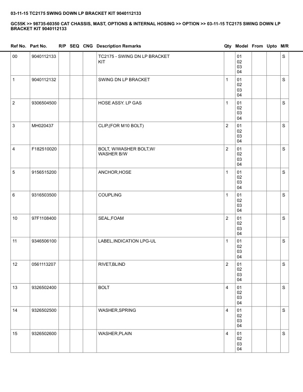 • 116. _03-11-10 TC2030 SWING DOWN LP BRACKET KIT 9040109714 Spare Parts Catalog.pdf