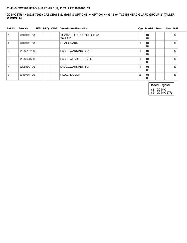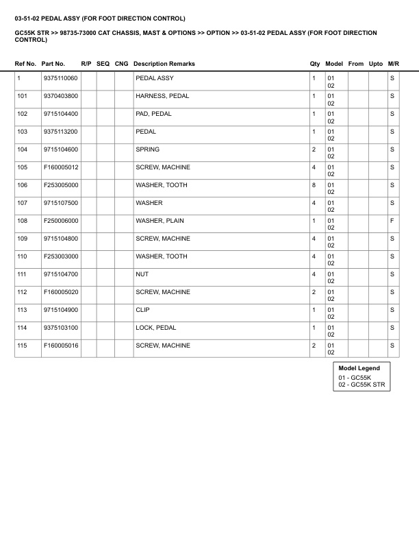 Caterpillar GC55K STR Parts Manual 98735-73000