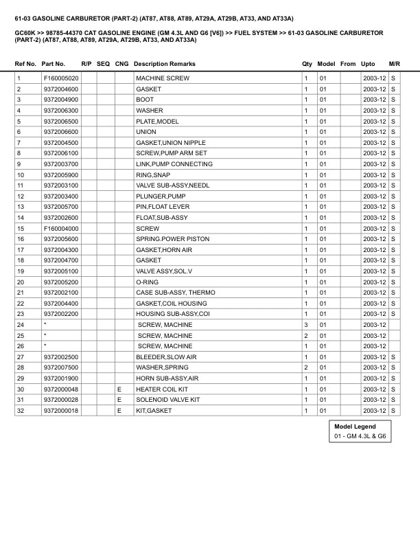 - Information: CAT GASOLINE ENGINE (GM 4.3L AND G6 -V6-)