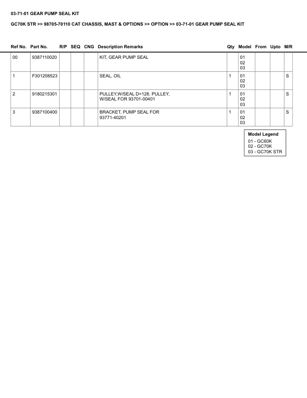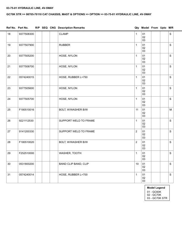 Caterpillar GC70K STR Parts Manual 98705-70110