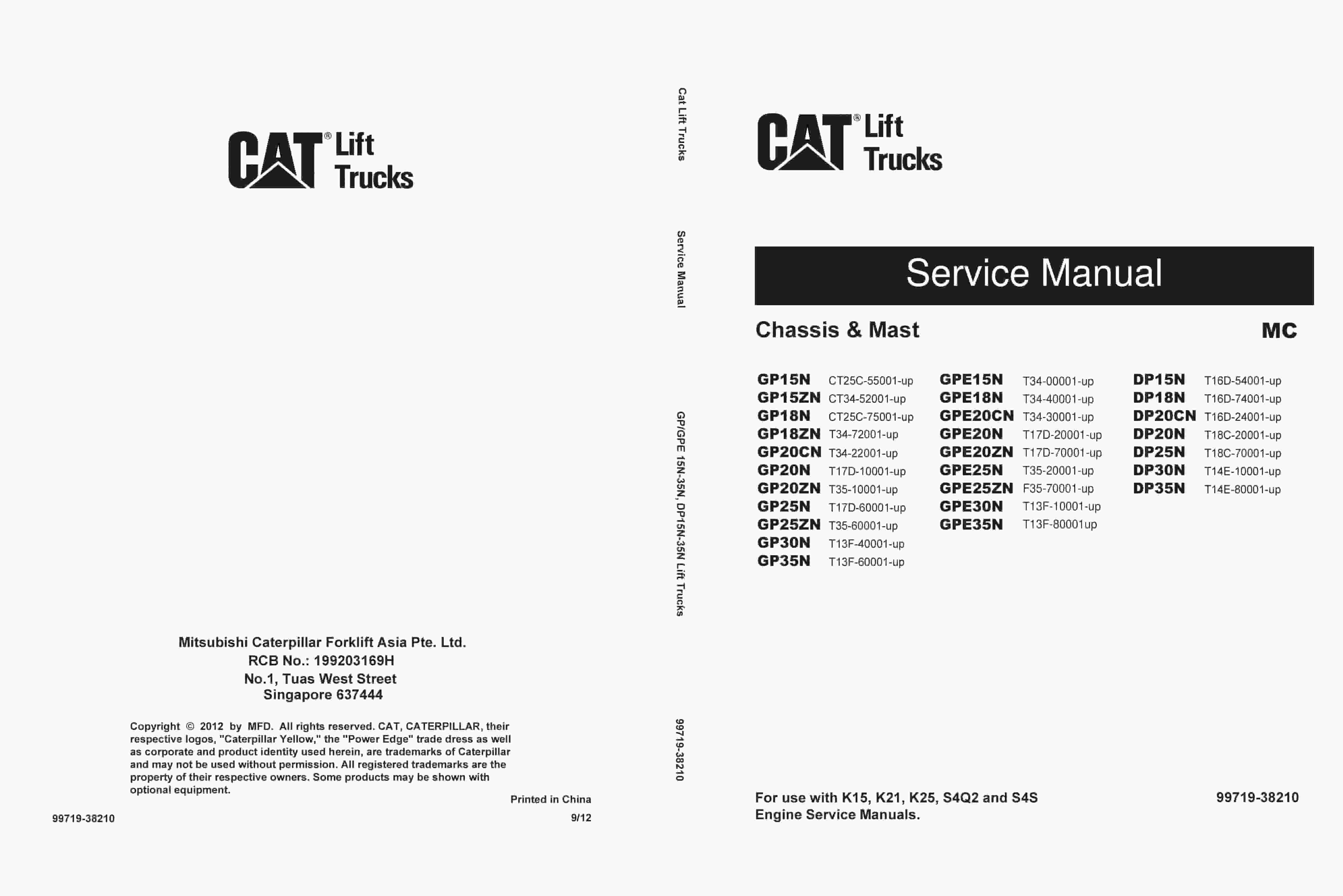 Caterpillar GP15N-35N, GPE15N-35N, DP15N-35N Chassis and Mast Service Manual 99719-38210