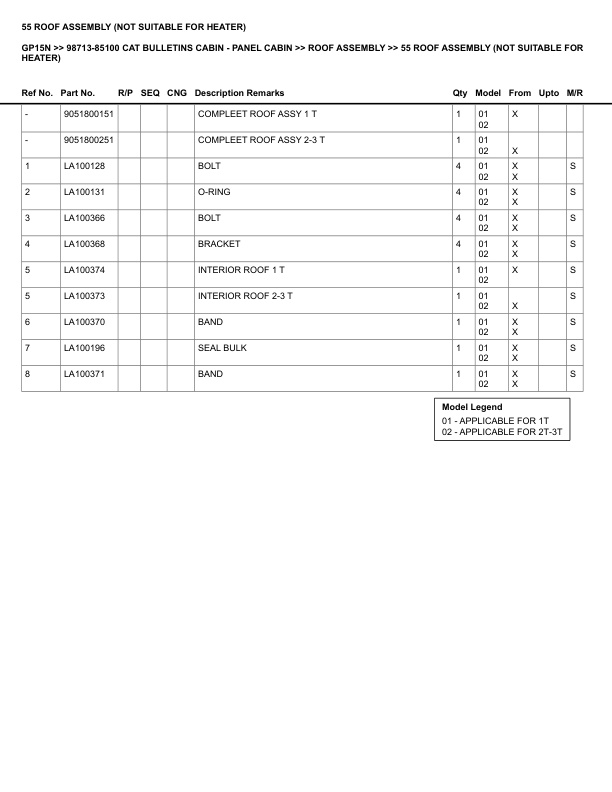 • Information: CAT BULLETINS CABIN – PANEL CABIN
