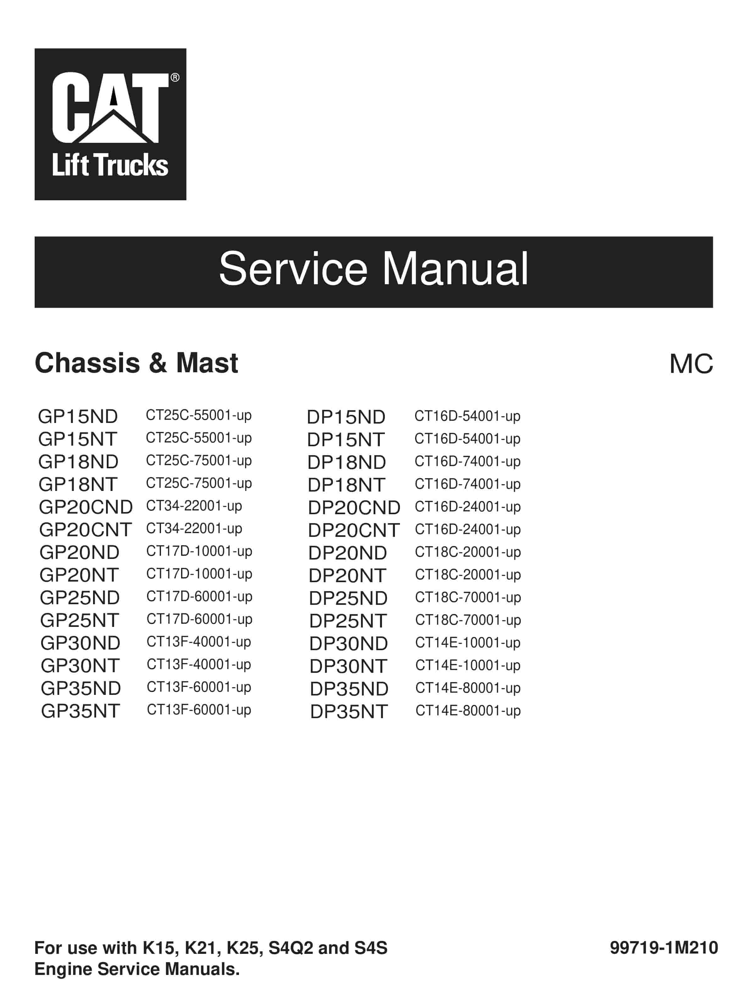 caterpillar gp15nd 35nt dp15nd 35nt chassis and mast service manual 99719 1m210 2