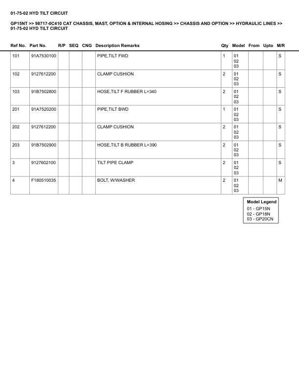 Caterpillar GP15NT Parts Manual 98717-0C410