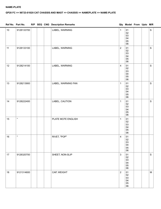 Caterpillar GP20 FC Parts Manual 98723-01020